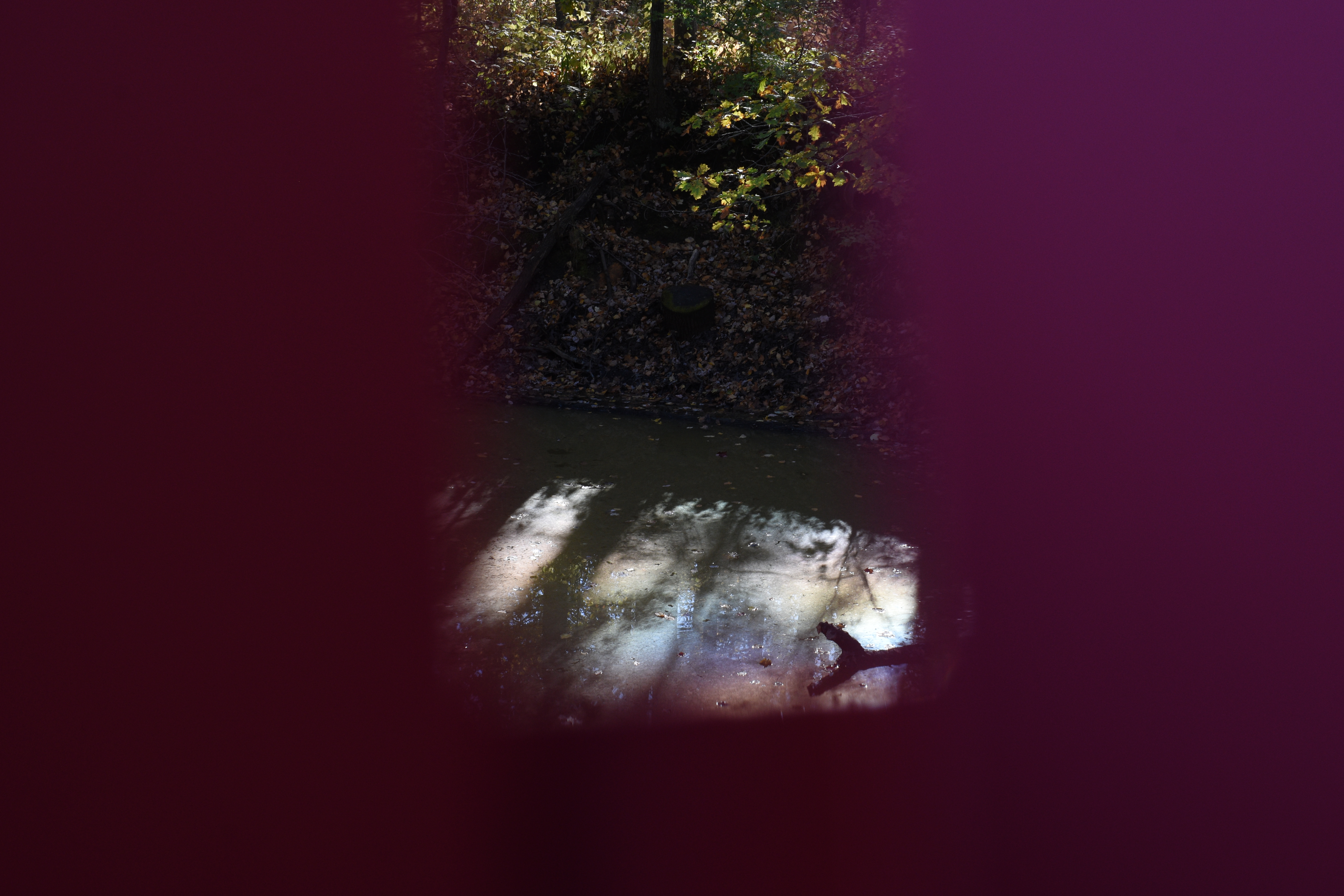 I walked past the pit in the ground and found the caverns that ran along several of the informal trails. I kept getting stuck at the initial pit though. I tried to drag my attention from the leaves and to the ground but I eventually was pulled back towards the fluorescent still water. Perhaps it’s something about the way the still water accumulates iron and mined minerals that makes it nearly impossible to move beyond. I felt sluggish and weary and suddenly very paranoid moving any deeper into the woods.